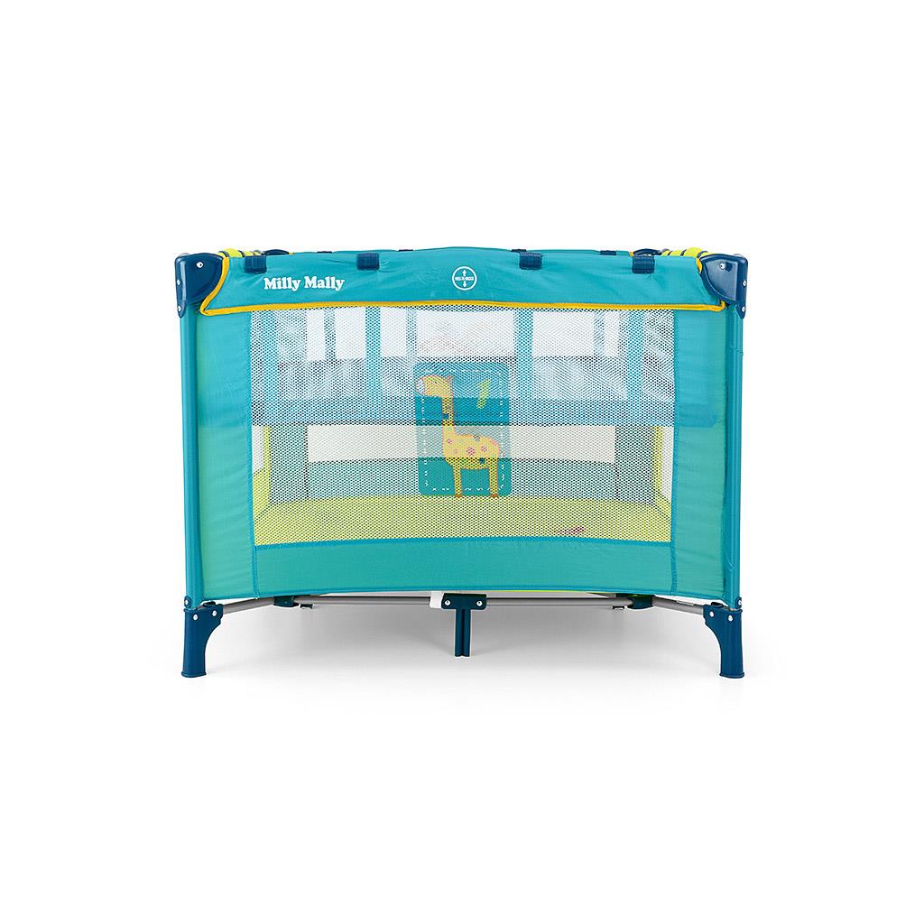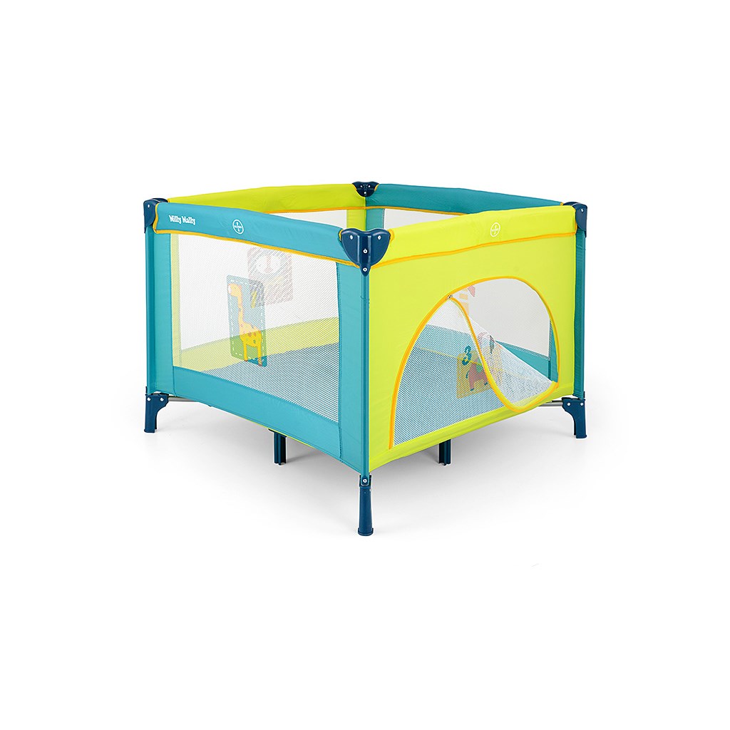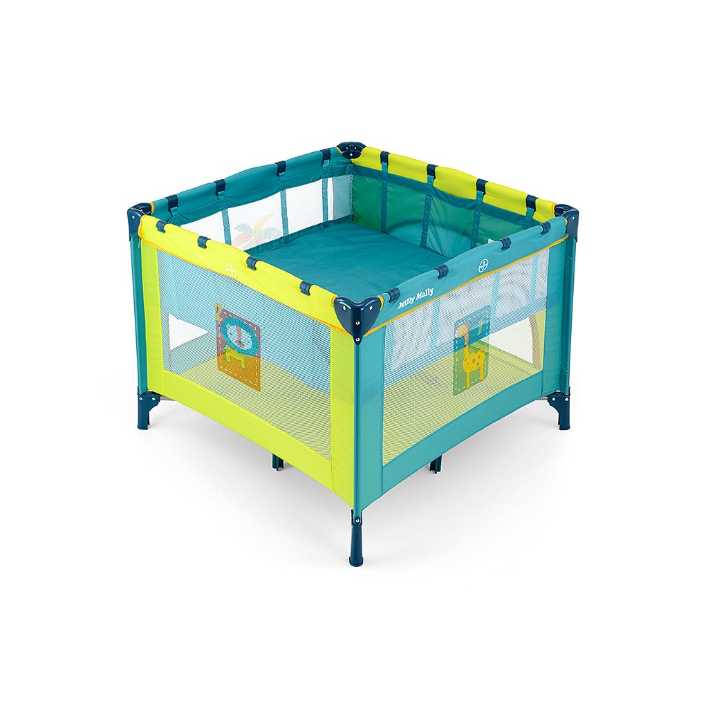 Jednoduché a rýchle skladanie ako u cestovnej postieľky. Priehľadná sieťka na bočných stranách. Jeden bok má otváracie dvierka na zips. Ohrádka má mäkkú farebnú matrac. Súčasťou je tiež taška na prenášanie. Rozmery: cca 100×100 cm, po zložení: cca 22x21x95 cm, váha 10 kg.