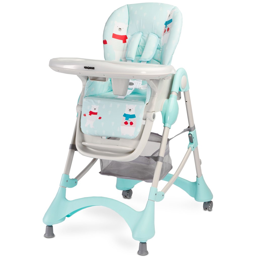 Moderná a praktická detská jedálenská stolička Magnus. Veľkou novinkou je nastavenie operadla do ležatej polohy. Charakteristika: