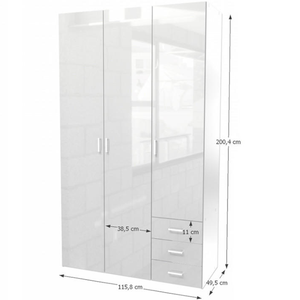 Skriňa, 3 – dverová, biela extra vysoký lesk HG, GWEN 70427